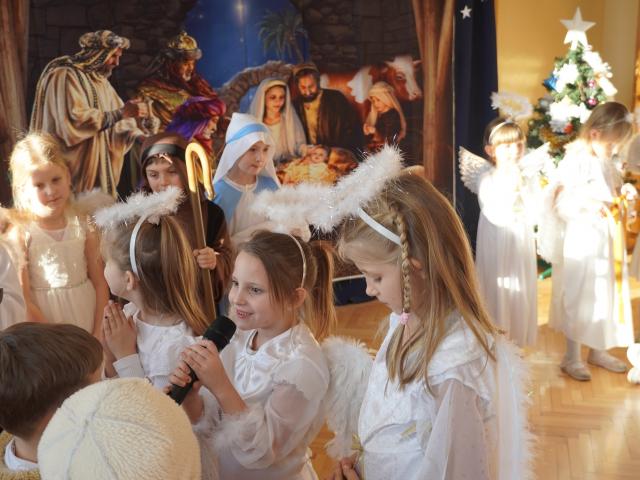 Z wielką radością i nadzieją w sercach oczekujemy Świąt Bożego Narodzenia. Ten wyjątkowy czas pozwala na spotkania w gronie najbliższych i przyjaciół, dlatego w piątkowe popołudnie i w naszej szkole zagościł świąteczny klimat. Uczniowie każdej klasy wraz ze swoimi wychowawcami zasiedli przy wigilijnych stołach, w pięknie przystrojonych salach, by przed świąteczną przerwą spędzić jeszcze kilka chwil wspólnie, w koleżeńskim gronie. Następnie cała społeczność szkolna zgromadziła się na sali gimnastycznej, gdzie przywitała wszystkich Pani Dyrektor, zapraszając zebranych do obejrzenia pięknych Jasełek w wykonaniu najmłodszych uczniów z oddziałów przedszkolnych. Po skończonym występie przedszkolaków odbył się koncert kolęd, który przygotowali starsi uczniowie wraz z naszą szkolną kapelą. Gdy ucichły dźwięki kolęd, odczytano fragment Pisma Świętego o narodzeniu Pana Jezusa, po czym wspólnie pomodliliśmy się, a modlitwie przewodził nasz katecheta o. Andrzej Drewniak. Nie zabrakło również wigilijnego opłatka, który otrzymał każdy z zebranych, by móc złożyć życzenia, symbolicznie dzieląc się nim z innymi.