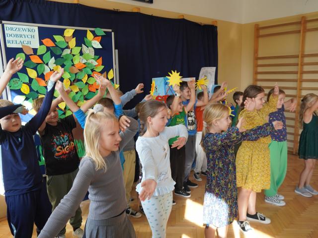 Dzisiaj uczniowie prezentowali efekty swoich działań w ramach: Tygodnia o przeciwdziałaniu przemocy rówieśniczej -klasy IV - VIII oraz Tygodnia budowania relacji-klasy I - III. Były piosenki, inscenizacja, prezentacja Muralu i Drzewka dobrych relacji. Wierzymy, że nie tylko tydzień ale cały rok będzie pełen dobrych relacji, szacunku, empatii i wzajemnego wsparcia.