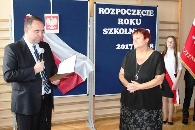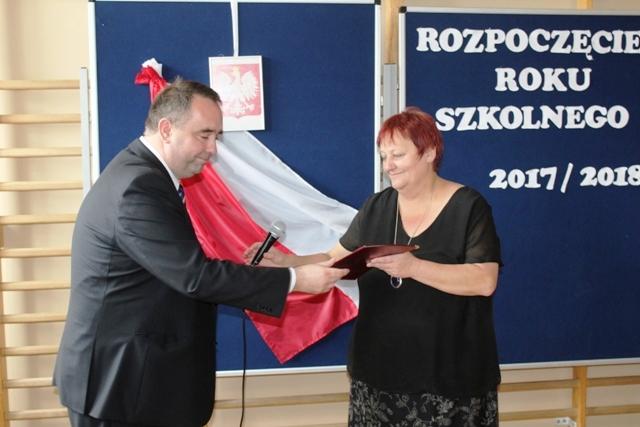 Gościem naszej uroczystości był Wójt Gminy Jodłownik Paweł Stawarz, który wręczył Pani Halinie Gocal akt powołania na stanowisko Dyrektora Szkoły Podstawowej Sadek-Kostrza na kolejne pięć lat.