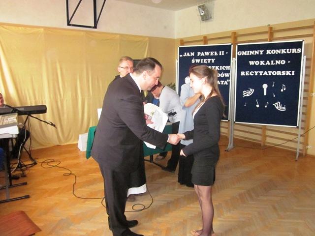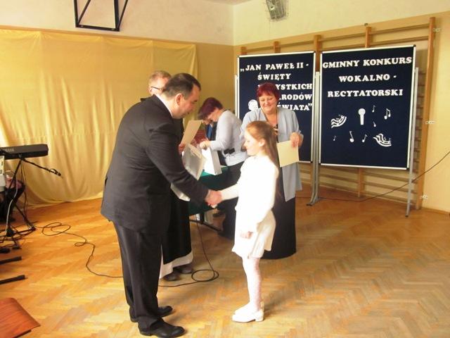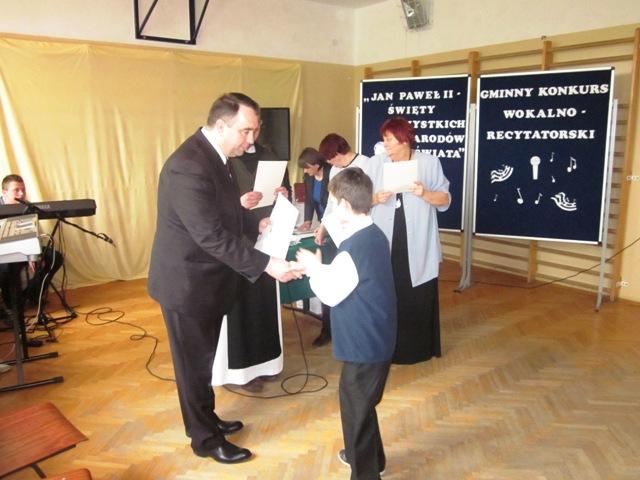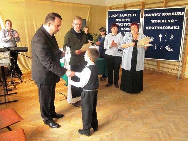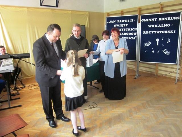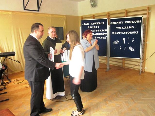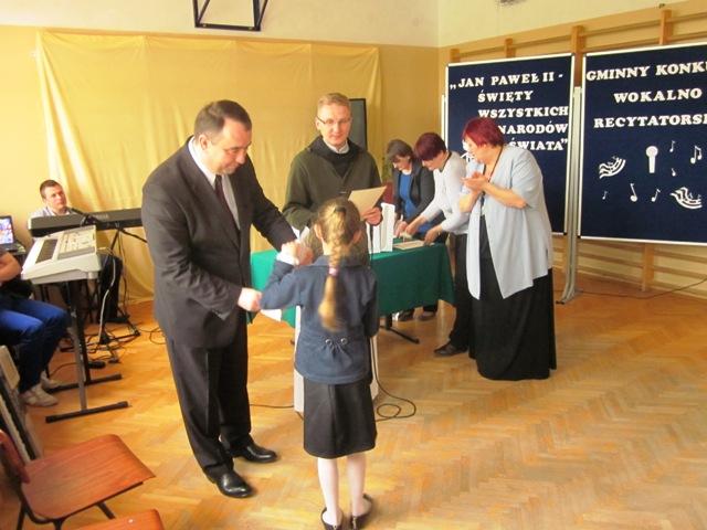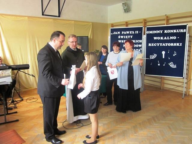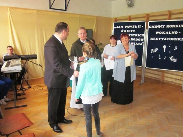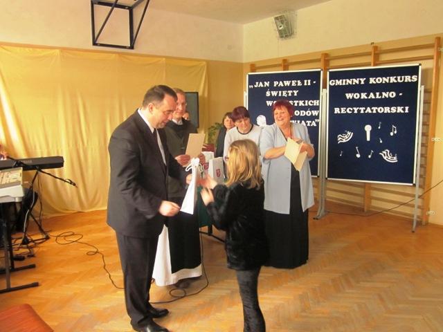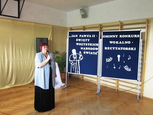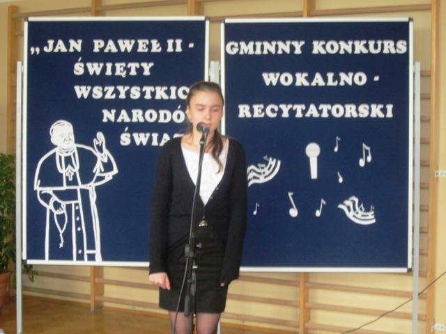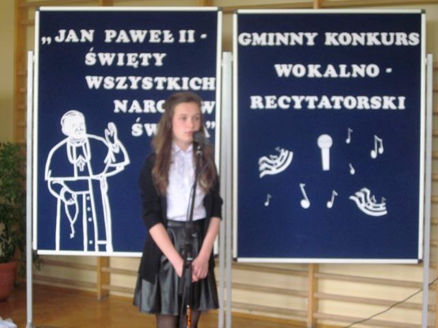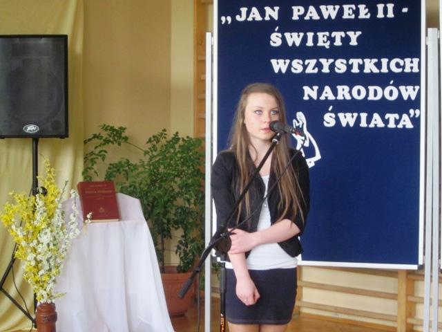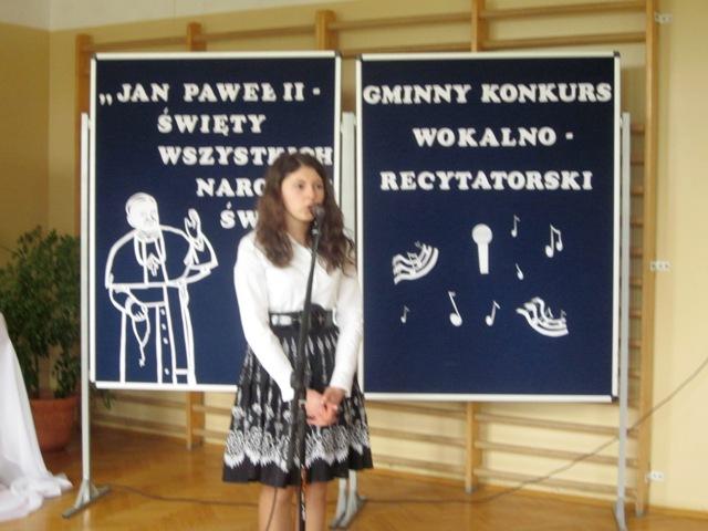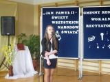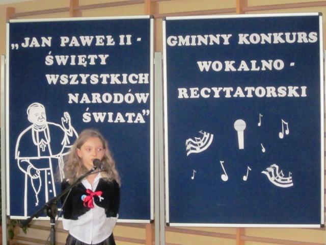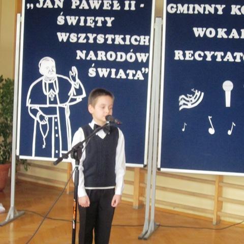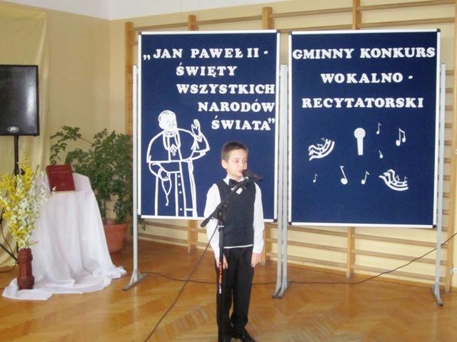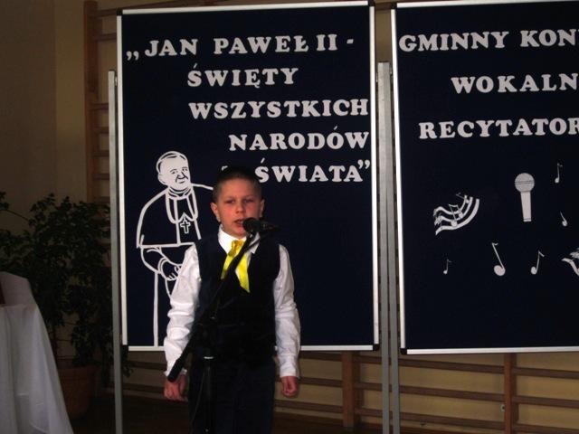 W ramach przygotowań do kanonizacji bł. Jana Pawła II, zorganizowaliśmy w naszej szkole Gminny Konkurs Wokalno-Recytatorski. Warto podkreślić, że na zaproszenie do udziału odpowiedziały wszystkie szkoły z naszej gminy, a uczniowie z Sadku-Kostrzy występowali poza konkursem.