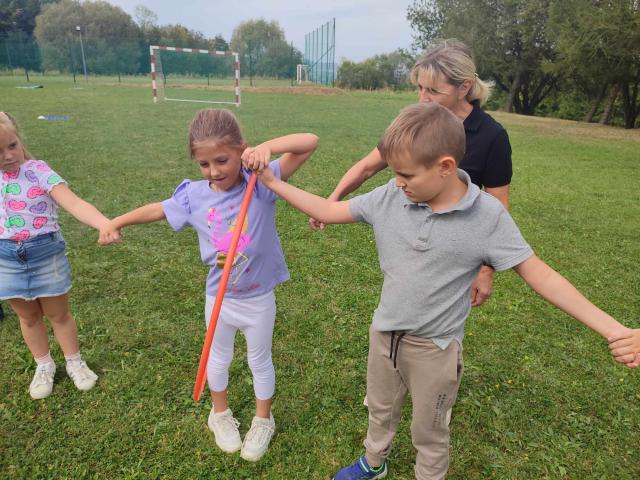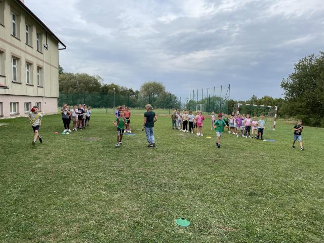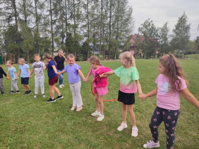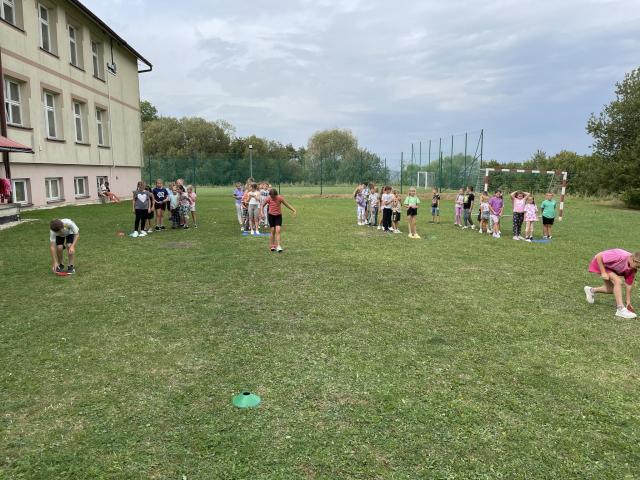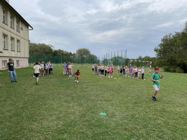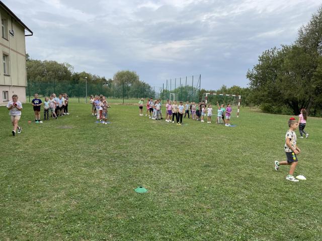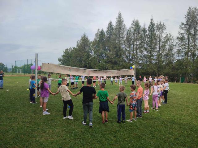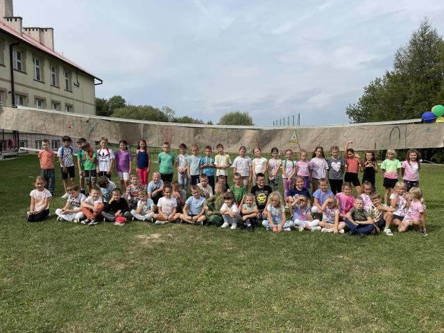 9 września uczniowie klas I - III radośnie powitali nowy rok szkolny. Korzystając z ostatnich dni pięknej pogody, przy muzycznych rytmach, dzieci tańczyły, uczestniczyły w sportowych rywalizacjach i zabawach na wesoło. Samodzielnie wykonały napis z nazwą i okrzykiem związanym z tym dniem. Dla wzmocnienia formy i siły, rodzice przygotowali pyszną galaretkę, burgery i lody. Wszyscy świetnie się bawili.