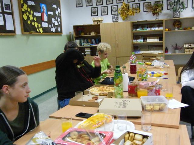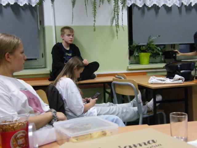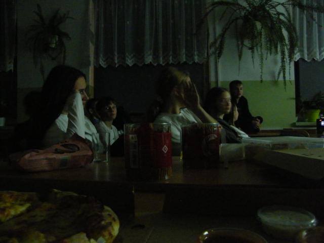 Wspólne spotkanie przy stole i oglądanie filmu były dodatkowymi atrakcjami literackiego wieczoru.