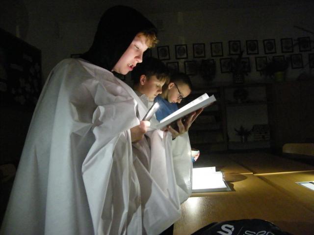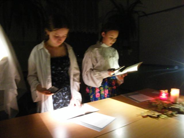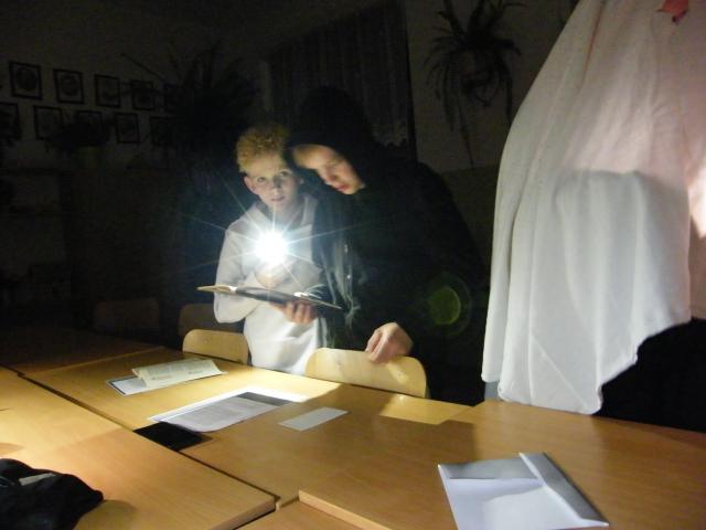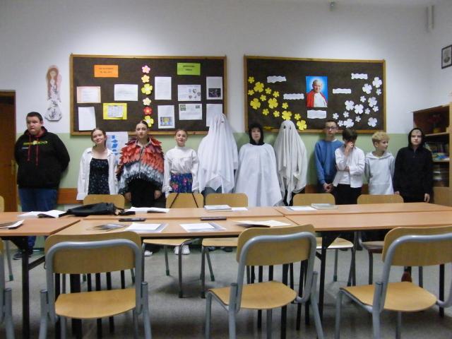 "Oto obchodzimy dziady”. Pod takim hasłem uczniowie klasy siódmej spotkali się wieczorem w szkole, aby wziąć udział w inscenizacji „Dziadów” cz. II Adama Mickiewicza.
