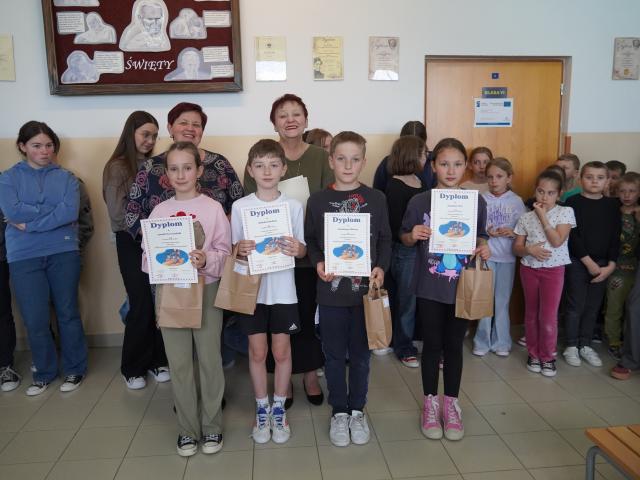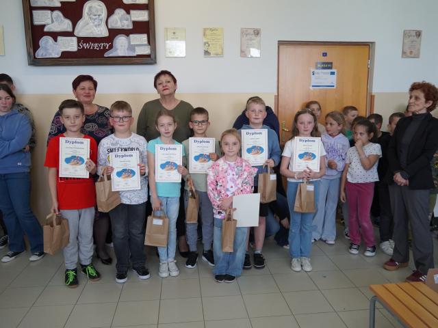 W poniedziałek 12 maja odbyło się podsumowanie konkursu plastycznego pod hasłem „Mój świat pełen mocy bez przemocy”. Na apelu gościliśmy panią kierownik Gminnego Ośrodka Pomocy Społecznej w Jodłowniku Panią Danutę Bartosz oraz Panią pedagog A. Bojanowską. To właśnie GOPS był współorganizatorem konkursu oraz sponsorem nagród. Trzydziestu uczestników otrzymało pamiątkowe dyplomy i nagrody.
