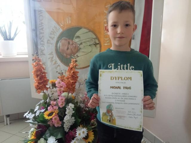 W części muzycznej tego konkursu uczestniczył Michał Frys z oddziału przedszkolnego i zajął I miejsce, pokonując wielu uczestników z całej diecezji.