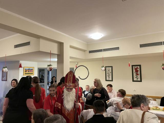 6 grudnia 2025 roku wolontariusze ze Szkolnego Koła Caritas w Sadku-Kostrzy wraz ze swoimi podopiecznymi – mieszkańcami Domu Pomocy Społecznej – wzięli udział w wyjątkowej uroczystości „Opłatka Maltańskiego”, organizowanej w Szczyrzycu już po raz jedenasty. Spotkanie rozpoczęło się Mszą Świętą koncelebrowaną, w której uczestniczyli przedstawiciele Związku Polskich Kawalerów Maltańskich oraz pensjonariusze DPS pod opieką wolontariuszy. Następnie wszyscy zgromadzeni dzielili się opłatkiem, składali sobie życzenia i wspólnie przeżywali przygotowany przez mieszkańców jasełkowy występ. Radosne kolędowanie uświetnił zespół „Szczyrzycanie”. Po uroczystej kolacji pojawił się długo wyczekiwany gość – Święty Mikołaj, który obdarował wszystkich prezentami, wywołując wiele uśmiechów i wzruszeń. Udział w tym wydarzeniu stał się dla nas kolejną piękną lekcją otwartości, dzielenia się dobrem i miłością z osobami potrzebującymi. Składamy serdeczne podziękowania Pani Justynie Pazdan, Dyrektor Domu Pomocy Społecznej w Szczyrzycu, za zaproszenie i możliwość uczestniczenia w tej wyjątkowej, wigilijnej uroczystości.