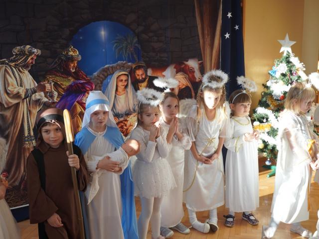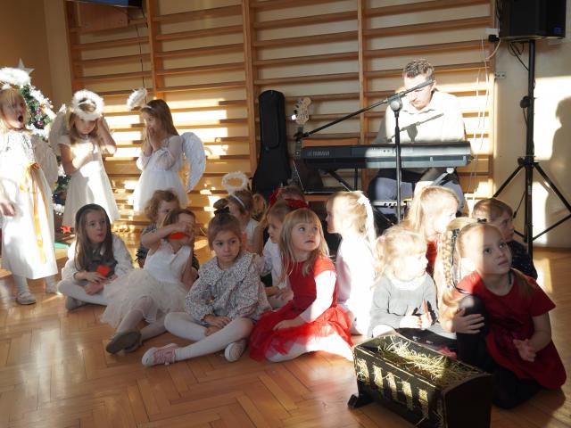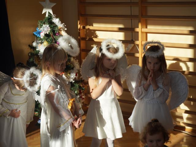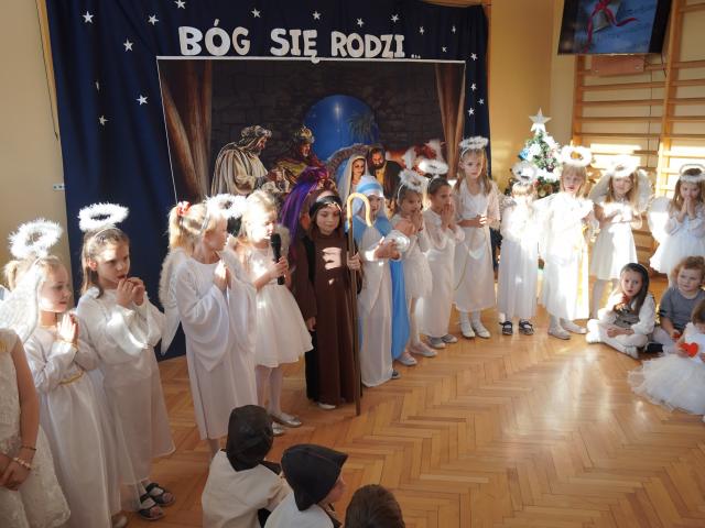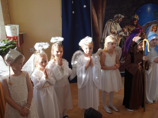 Z wielką radością i nadzieją w sercach oczekujemy Świąt Bożego Narodzenia. Ten wyjątkowy czas pozwala na spotkania w gronie najbliższych i przyjaciół, dlatego w piątkowe popołudnie i w naszej szkole zagościł świąteczny klimat. Uczniowie każdej klasy wraz ze swoimi wychowawcami zasiedli przy wigilijnych stołach, w pięknie przystrojonych salach, by przed świąteczną przerwą spędzić jeszcze kilka chwil wspólnie, w koleżeńskim gronie. Następnie cała społeczność szkolna zgromadziła się na sali gimnastycznej, gdzie przywitała wszystkich Pani Dyrektor, zapraszając zebranych do obejrzenia pięknych Jasełek w wykonaniu najmłodszych uczniów z oddziałów przedszkolnych. Po skończonym występie przedszkolaków odbył się koncert kolęd, który przygotowali starsi uczniowie wraz z naszą szkolną kapelą. Gdy ucichły dźwięki kolęd, odczytano fragment Pisma Świętego o narodzeniu Pana Jezusa, po czym wspólnie pomodliliśmy się, a modlitwie przewodził nasz katecheta o. Andrzej Drewniak. Nie zabrakło również wigilijnego opłatka, który otrzymał każdy z zebranych, by móc złożyć życzenia, symbolicznie dzieląc się nim z innymi.